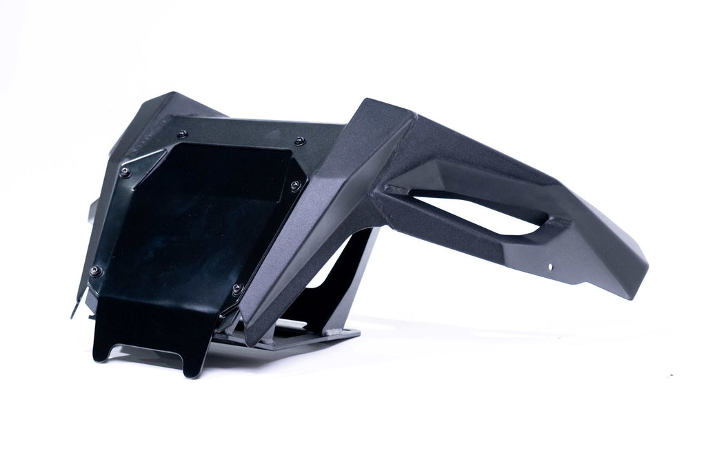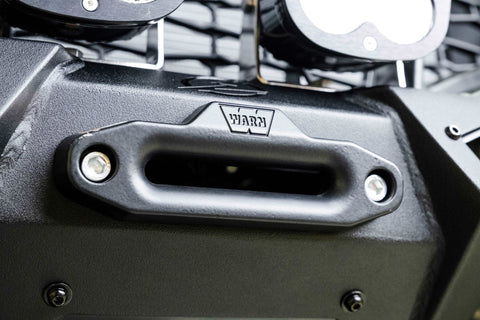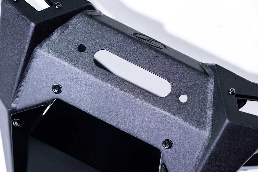 Elektric Offroad Design’s Volt Series Winch Front Bumper for the 2022+ Polaris RZR Pro R was designed to mount industry standard UTV winches hidden behind the bumper skid. The universal light mount bolt pattern and included LED light bar brackets allow you to mount a 10-inch light bar for additional lighting on the trail. The Volt Series adds recovery and lighting options as well as unique styling to your RZR. The bumper is finished in a hammer black powder coat with satin black powder coat aluminum panels, and features a fully bolt-on installation.
