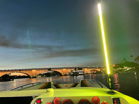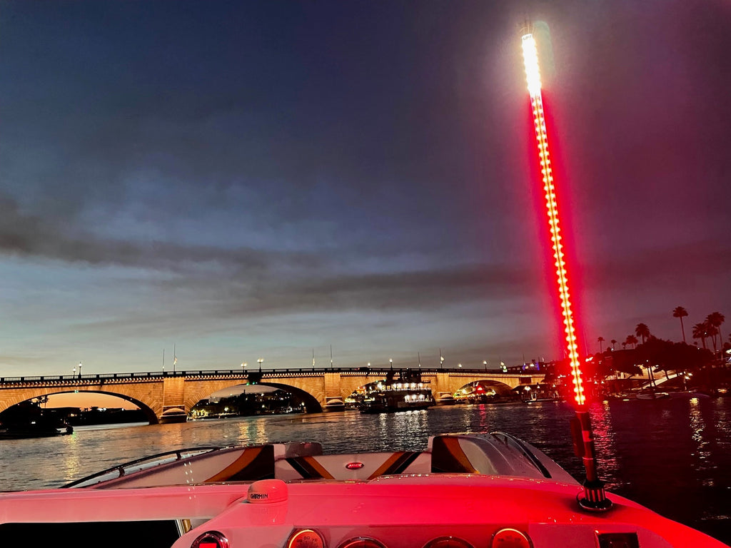 Introducing the latest marine technology to hit the market!ÊÊBoat WhipzÊare an amazing addition to your boat and will brighten up your night.Ê Whether you are parked in the channel or underway at dusk, Boat Whipz have a setting that will work for you!Ê This patented all around stern light will have you shining bright and safe.