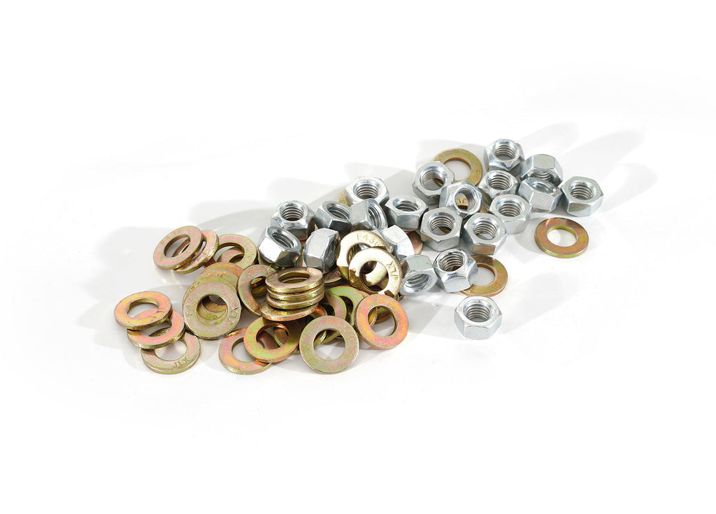 - Also included are all new yellow zinc coated hardened washers & all metal top locking nuts (not nyloc nuts like other kits)
