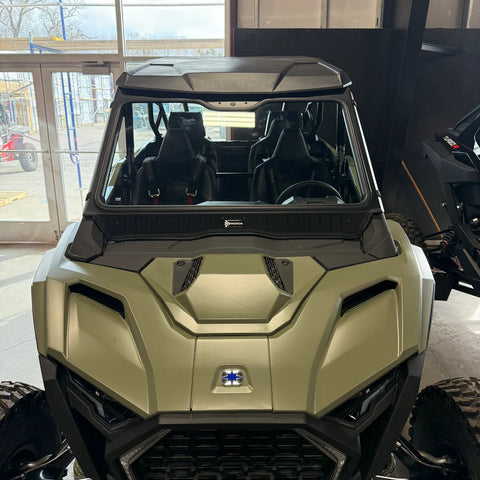 - FRAME HAS KNOCKOUTS DESIGNED TO WORK WITH THE POLARIS POLY SPORT ROOF WITH THE LOCK AND RIDE CLAMPS, AS WELL AS THE POLARIS ALLUMINUM ROOF WITH THE LIGHT BAR POCKET.