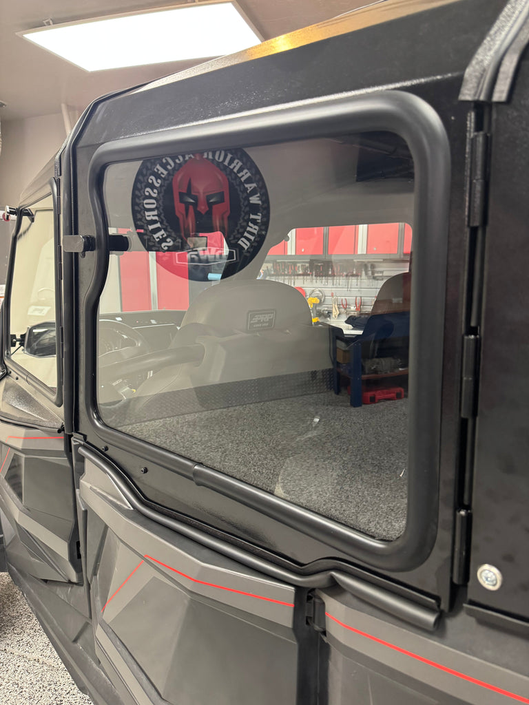 Whether braving the elements of cold, dust, or snow, "THE WARRIOR VAULT" is the perfect solution for any weather condition. Elevate your RZR PRO R experience with our luxurious cab enclosure, designed to seamlessly integrate with the factory OEM Roof and Doors. Keep the heat in and the elements out, making every ride a comfortable and exclusive experience. Discover another reason to love your RZR PRO R with "THE WARRIOR VAULT."