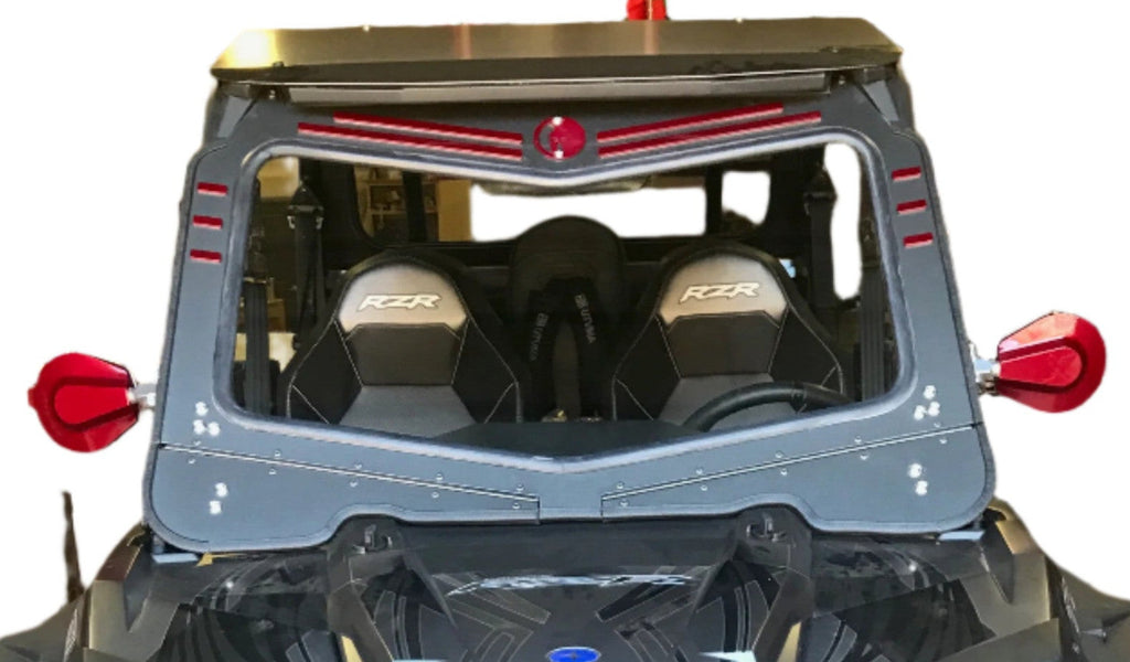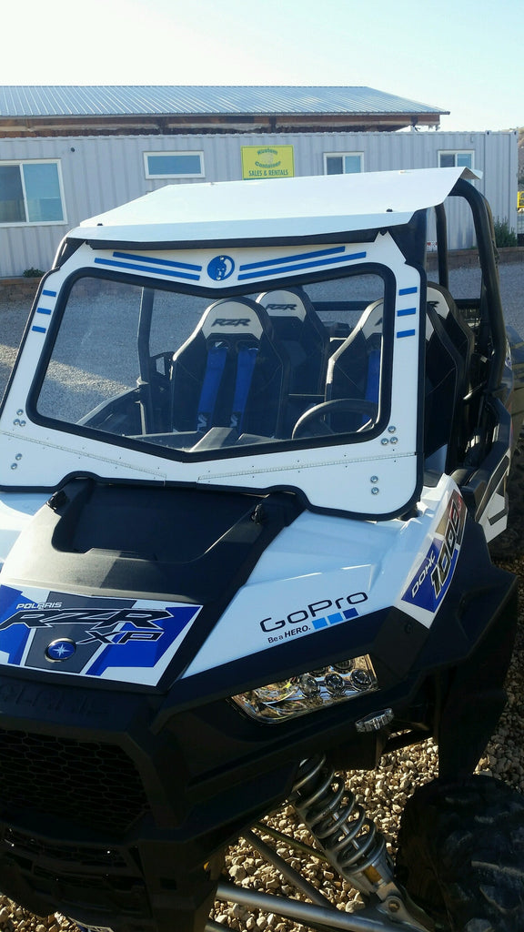 Every windshield we produce is made with Laminated Clear Safety Glass just like automobile glass. Each windshield has two independently working Vents which can be open or closed depending on the weather. The Aluminum Frames are Powder Coated in Textured Black which is more scratch resistant than standard smooth Powder Coats. Each windshield was templated by our team of fabricators using the best technology and equipment to get the best fit possible.