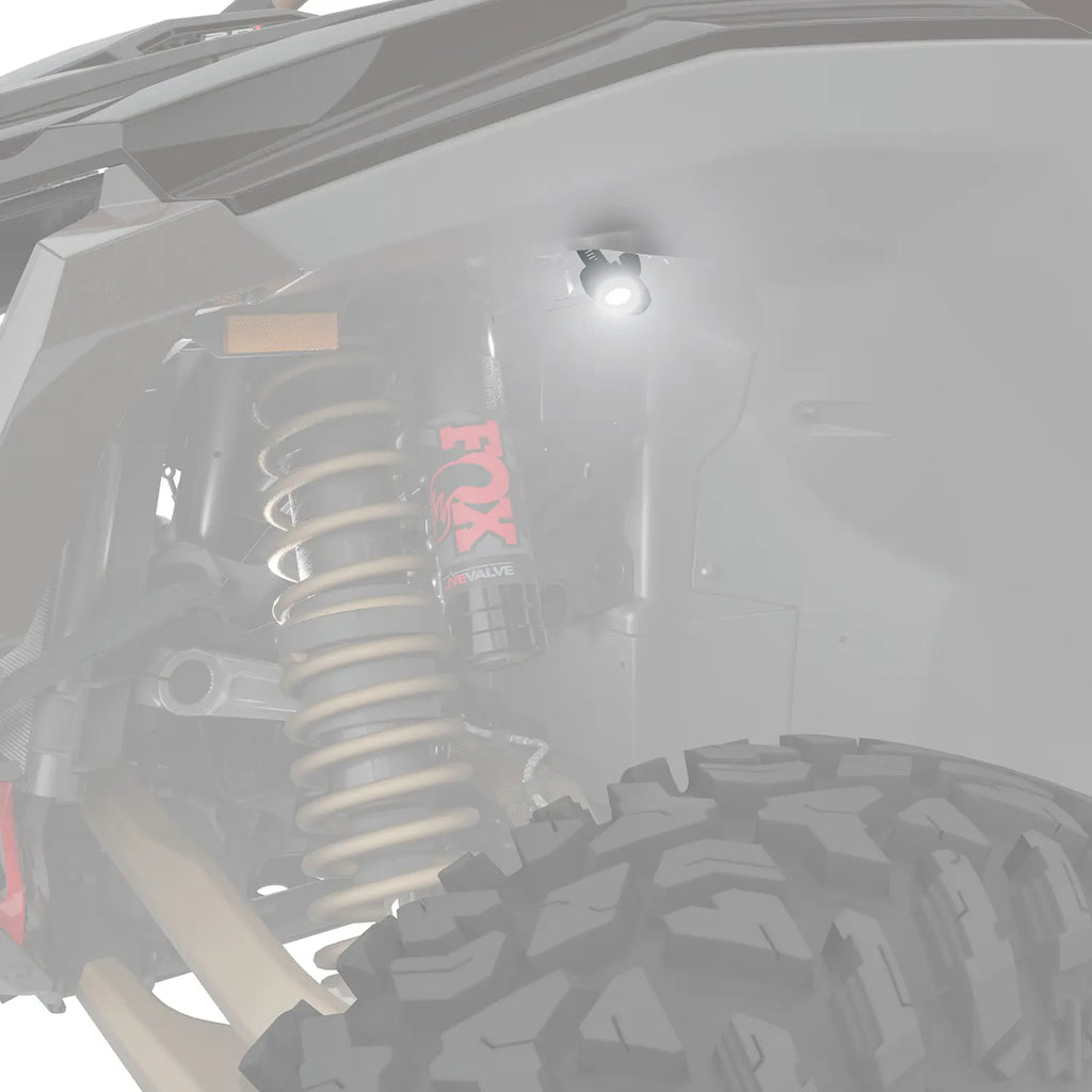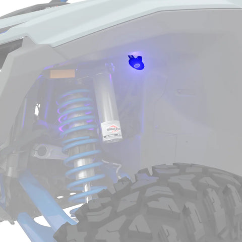 Pro Armor Rock Lights enhance visibility during off-road adventures. These rugged wheel well lights are designed to illuminate the ground around your vehicle, making it easier to navigate rocky terrain, trails or off-road paths, especially in low-light conditions. Universal mounting allows you to install them in the wheel wells or any other location you prefer. Constructed with premium materials, these rock lights are built to withstand the toughest off-road environments for durability and longevity. The rock light kit includes a set of four lights, along with all necessary mounting hardware and detailed installation instructions. This item has universal fitment for Polaris PULSE-equipped vehicles.