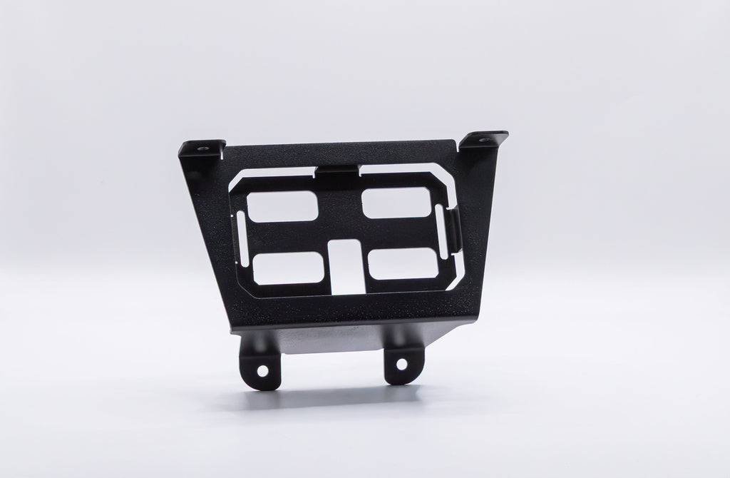 Infinite-Offroad Polaris mount sits perfectly in the lower cubby of the Pro/R. We came up with a stand alone mount that requires no cutting of your dash, sits in place and mounts with 4 self tapping screws, and still have access to your 12v! Oh and did we mention it was flush mount!