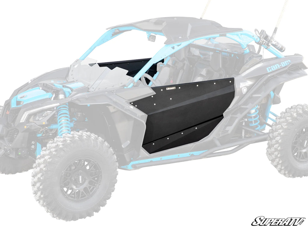 SuperATV’s Aluminum Doors for the Can-Am Maverick X3 make your UTV bulletproof. These complete doors replace your factory half doors and fill in the lower gap. With brake press bent aluminum and braced with 1” diameter tubed steel, we made our doors as tough as your machine. It bends perfectly to match the contours of your Maverick X3 and it’s finished with a UV resistant powder coating. It’s everything you need to beef up your machine.