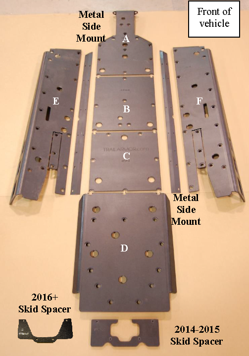 Get the best in under vehicle protection with Trail Armor's full skid plate set for the 2014 - 2023 RZR 4 XP 1000 (Standard, Sport, Premium, Ultimate, Highlifter), 2016 - 2021 RZR 4 XP Turbo, 2019 - 2021 RZR 4 XP Turbo S and RZR 4 XP Turbo S Velocity. Made from a 1/2" supertough polymer, these plastic skids absorb shock to the bottom of the vehicle with no dents or rust and are lighter than traditional metal skids. Strategically placed drain holes allow dirt and debris to wash out - you don't have to remove them to clean out the belly your vehicle. They come in easy to install jointed sections that cover the full length and breadth of the vehicle, including the front and rear differential. Trail Armor's full skid plate set for the Polaris RZR XP 4 1000 and RZR XP 4 Turbo provides additional rear coverage to protect your rear radius rods (not the trailing arms). Additionally, Trail Armor's skid plates feature extended side panels that roll up the bottom and sides to the rocker panels of your vehicle. For trailing arm and front a-arm protection, see product codes TA012ARMIMPFG-RZR1000 or TA012ARMIMPFG-RZRTURBO-S and TA012IMPTAG-RZR1000 or TA012IMPTAG-RZRTURBO-S as appropriate (shown in picture installed on machine, sold separately). Mounting hardware and instructions included. Ships UPS ground - no truck line needed! You must specify year model as the 2016+ models have a different rear panel and spacer. See ALSO FITS chart in gallery for specific year and model fitment.