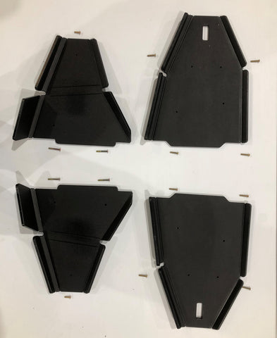 Break bad on the trail, ride the most buggy-busting terrain you can find - Trail Amor's a-arm guards can take the iMPACT! Made of the same 1 /2" Super Tough Polymer we make our skid plates out of, these are by far the toughest, best designed and coolest a-arms on the market. Guards have three sided protection of your front and rear CV boots - front, rear and bottom - and mount easily with no drilling required. All mounting hardware and simple photo-documented installation instructions are included. See Also Fits Chart in gallery for specific year and model fitment. COLORS ARE CONSIDERED A SPECIAL ORDER AND ARE NON-RETURNABLE. THEY ARE NOT PIGMENT MATCHED TO ANY OEM MANUFACTURER'S COLOR SCHEME. PLEASE CONTACT US FOR ANY QUESTIONS ON MATCHING OR BLENDING WITH YOUR VEHICLE'S PLASTIC AND/OR GRAPHICS. THERE IS NO ENGRAVING ON THE FRONTS OF THE A-ARM GUARDS IN TRICOLOR. PICTURE SHOWS HOW SIDES WOULD LOOK.