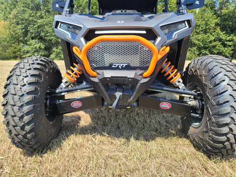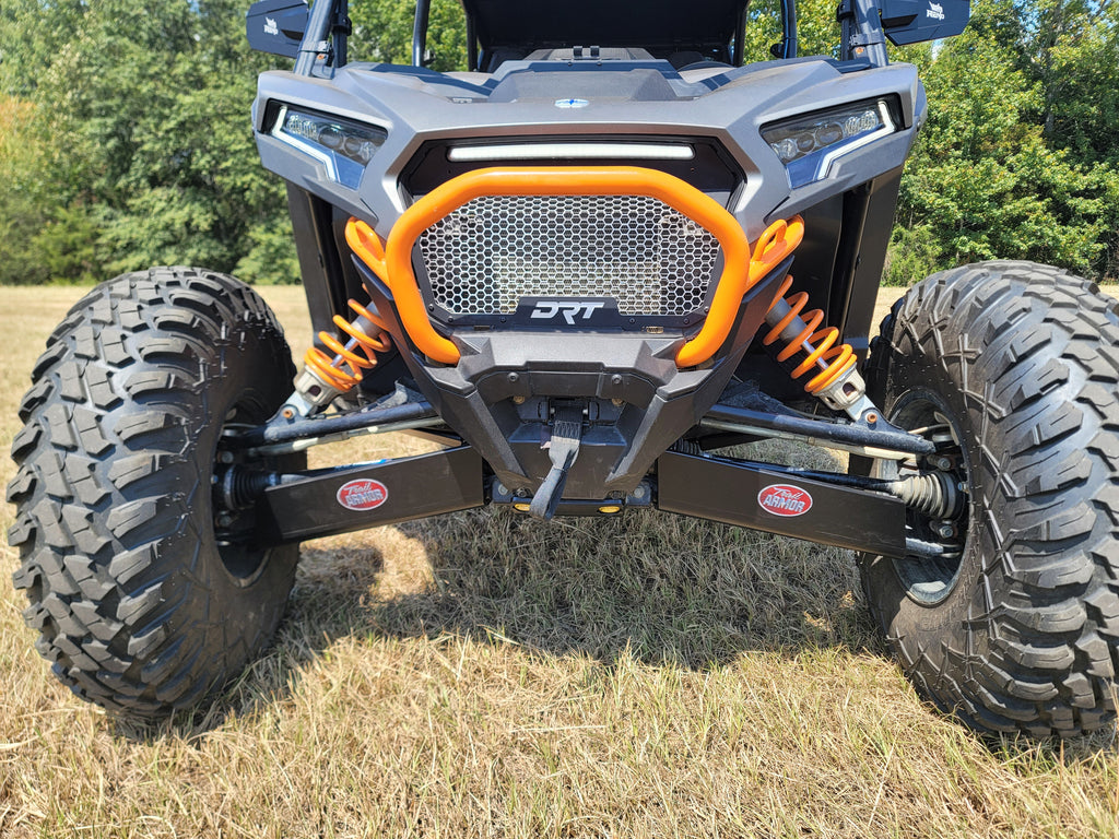 Take on the toughest trails with confidence using Trail Armor’s iMpact Front Arm Guards. Manufactured from the same 1/2" super tough polymer as our skid plates, these guards offer superior durability and a refined design. They provide comprehensive three-sided protection for your front CV boots—covering front, rear, and bottom—while installing effortlessly without the need for drilling. Each set includes all mounting hardware and clear photo-guided instructions. Sold as a pair for front arms only; trailing arm guards are available separately. For models from 2014 to 2023, see product TA012ARMIMPFG-RZR1000. Note that colored guards are special order, non-returnable, and may not match OEM colors exactly. Contact us with any questions about color matching or blending. Refer to the FITS chart for specific compatibility. These guards do not fit arched a-arms. Tricolor versions feature engraving; solid and black versions do not.