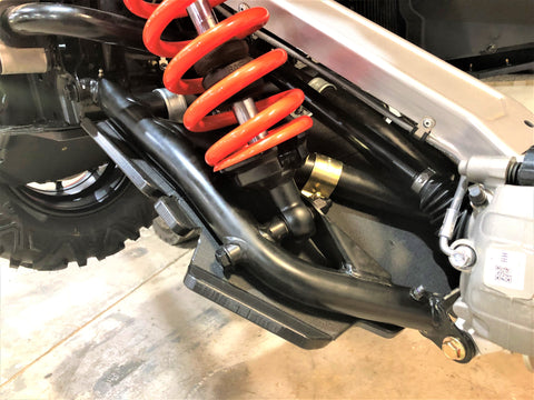 Take on the toughest trails with confidence using TrailArmor iMPACT A-arm guards. Built from the same durable 1/2" super tough polymer as our skid plates, these are among the strongest and most well-designed guards available. Made to fit Can Am Maverick Sport X XC (2020–2023), Maverick Sport X MR, Maverick Sport X RC (2020–2025), Commander XT, Commander Max XT, Commander XT-P (2021–2025), Commander X MR, Commander Max XT-P (2022–2025), and Commander Max X MR 1000 (2024–2025), they offer three-sided protection for front and rear CV boots—front, rear, and bottom. Installation is simple with all mounting hardware and detailed photo instructions included. Designed to fit arched A-arms only, not straight. Colors are not color-matched to any OEM graphics. Colors are considered a special order.  They cannot be cancelled once ordered or returned.  If you have any questions about colors and your graphics, please contact us and we'll give you our honest opinion.  See Also Fits Chart for specific year and model fitment.  Tri color guards are not engraved as there is not enough room on these guards.  The gallery picture is for illustration only of profile contrasts.