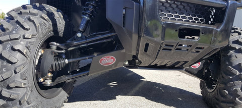Trail Armor's iMpact A-Arm Guards for the Honda Pioneer 1000, 1000-5, and 1000-6 Crew are designed to tackle the toughest off-road terrains you can find. Made of 1/2" Super Tough polymer, the same material used to craft our skid plates, these guards offer three-sided protection for the front and rear a-arms. Easy to install with no drilling required, these guards come with all necessary mounting hardware and detailed, photo-documented instructions that are tailored for year 2022 - 2025. See ALSO Fits chart in gallery for specific year and model fitment. Please note that fitment on the Forest and Trail Editions have not been confirmed. NOTE: These guards are not large enough to be engraved. Sample engraving in picture shown to illustrate tri color appearance.