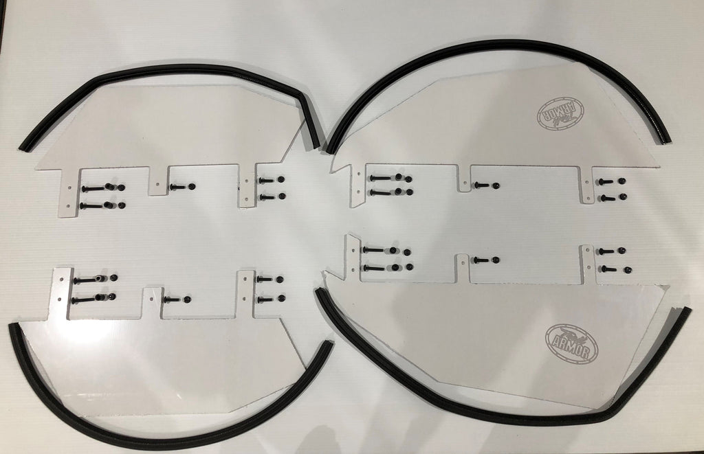 Trail Amor's Door Inserts for the 2020 - 2022 Honda Talon 1000X-4 and Talon 1000X-4 Fox Live Valve Edition are made from either a 1/4" polycarbonate with mar-resistant coating on both the interior and exterior OR 1/4" solid black plastic. The polycarbonate option allows a clear view to watch your wheel placement while rock crawling while keeping mud and debris from entering the cab!  If you need to close this gap but don't need a visual reference for technical rock crawling, the black option is a cost effective way to achieve this.  Includes mounting hardware and detailed photo-documented instructions.  Please see ALSO FITS chart in gallery for specific year and model fitment.