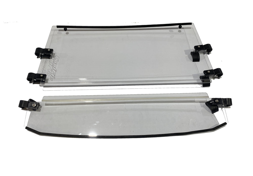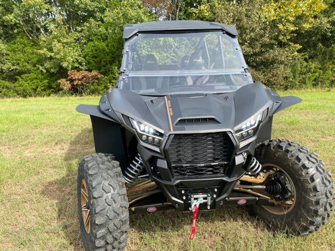 Trail Armor’s revolutionary CoolFlo Windshield family continues to grow with the addition of this windshield for the KRX 1000 and KRX 4 1000. Made of 1/4" mar-resistant coated (on the interior and exterior) polycarbonate, Trail Armor’s CoolFlo Windshield provides excellent face and eye protection while relieving back draft dust and heat for a comfortable ride. They are easy to install using Trail Armor's Fast Clamps, and the lower section can be removed and replaced as needed. Trailers great with both panels in place. WILL NOT FIT ANY EXTRUDED CAGE. SEE "ALSO FITS" CHART FOR SPECIFIC YEAR AND MODEL FITMENT.