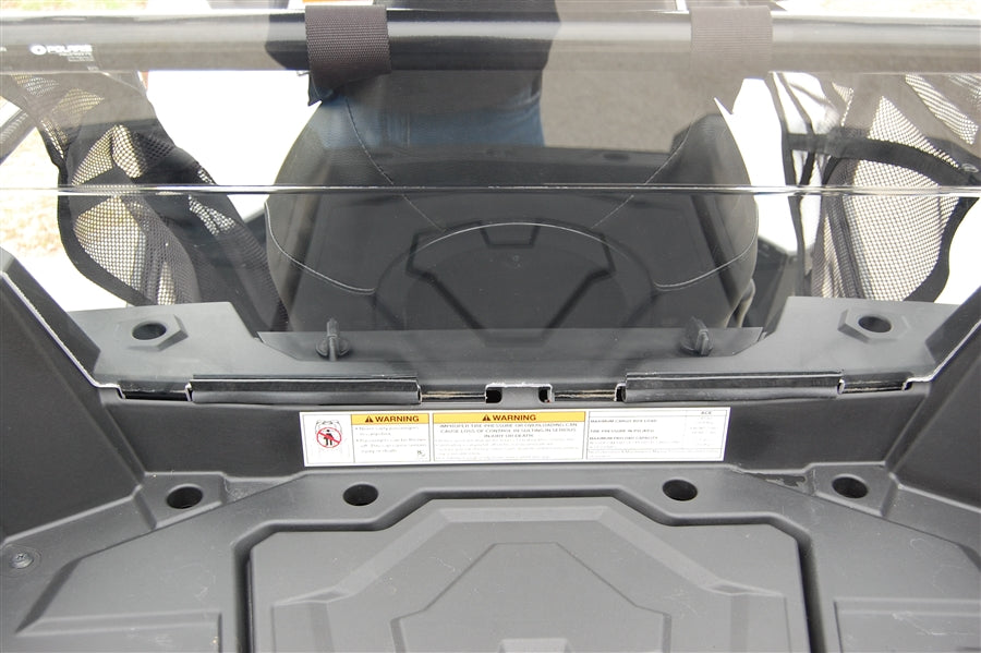 Trail Armor’s Rear Window Dust Shield kit provides the most effective barrier for keeping cargo, dust and debris out of the cab of your 2014 - 2016 Polaris Sportsman ACE 325 (2014 - 2016) and 570 (2015 - 2016). PLEASE SEE ALSO FITS CHART FOR FITMENT SPECIFICS. YOU MUST SPECIFY YEAR AND MODEL DUE TO YEAR BREAK. The upper rear windshield is made from ¼” thick (not 3/16” or 1/8”) clear polycarbonate, making it the strongest and most durable rear window on the market. Unlike some of the other rear windows on the market, Trail Armor’s Rear Window Dust Shield kit has a UV protective coating on the exterior of the window to inhibit yellowing. Additionally, instead of just fitting between the roll cage bars (leaving sizable gaps between the shield and the bars), Trail Armor’s Rear Window Dust Shield kit overlays the roll cage bars for a professional, tight fit as a cab back – essential when used as part of a full cab enclosure for those winter rides - and will not interfere with hard or soft tops. Like all Trail Armor windshields, skids and debris shields, this Rear Window Dust Shield kit is cut with a CNC 5-axis router to ensure a smooth-edged, accurately cut product every time. With Trail Armor's quick clamps, this kit is easy to install/remove and comes with all mounting hardware and detailed, photo-documented color instructions.