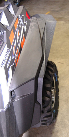 Made of HDPE plastic (textured on face side) custom cut to work with the RZRXP900 and RZR4XP900 OEM fender flares.