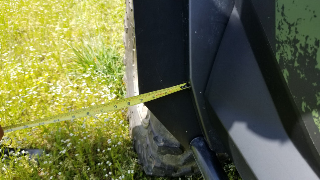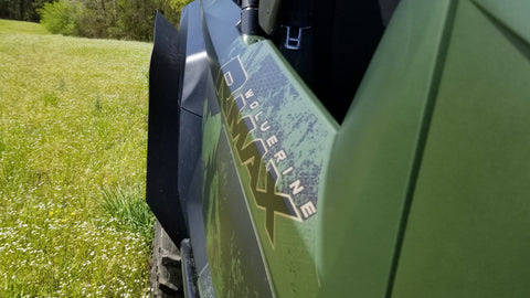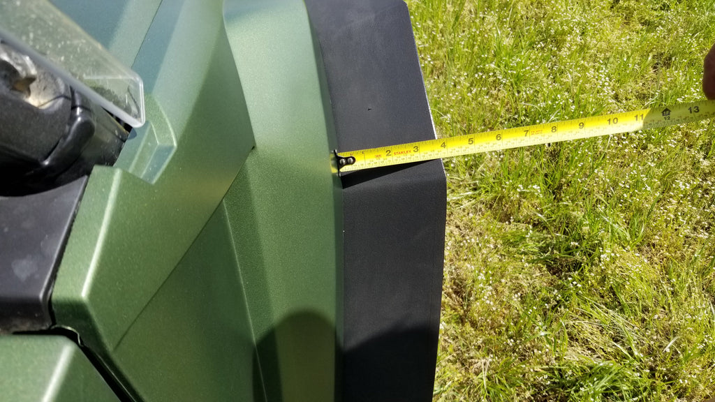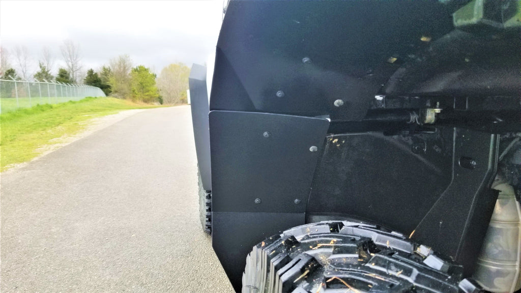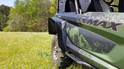 Made of HDPE plastic (textured on face side) custom cut to work with the front and rear Wolverine RMAX 4 1000 Compact fenders. Will extend the width of the vehicle 4 inches each side.
