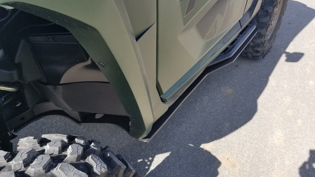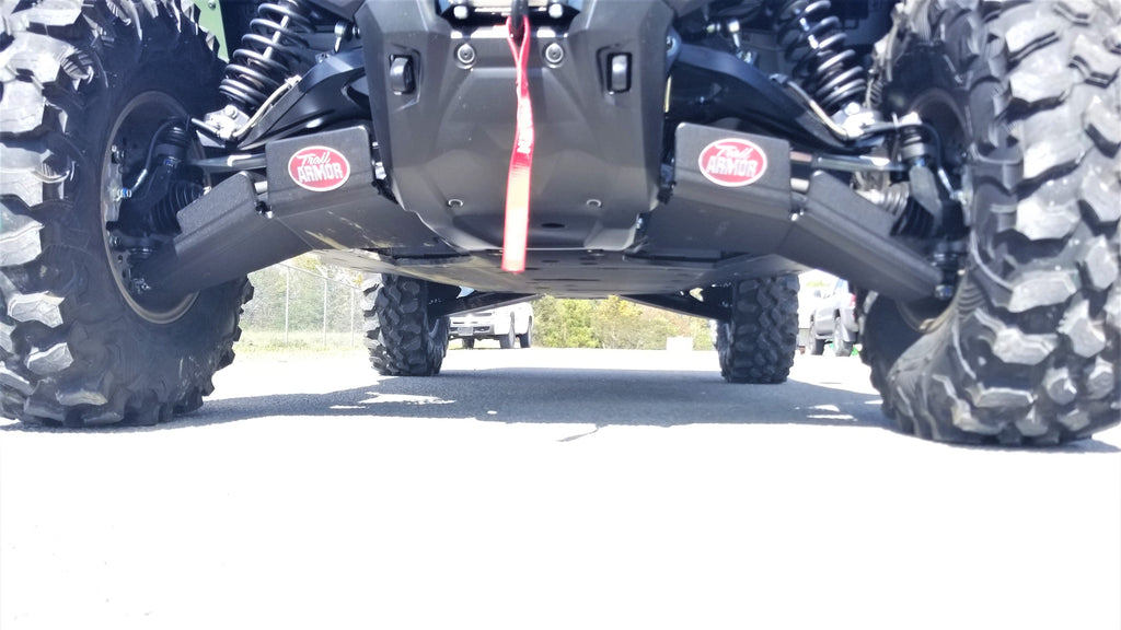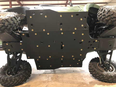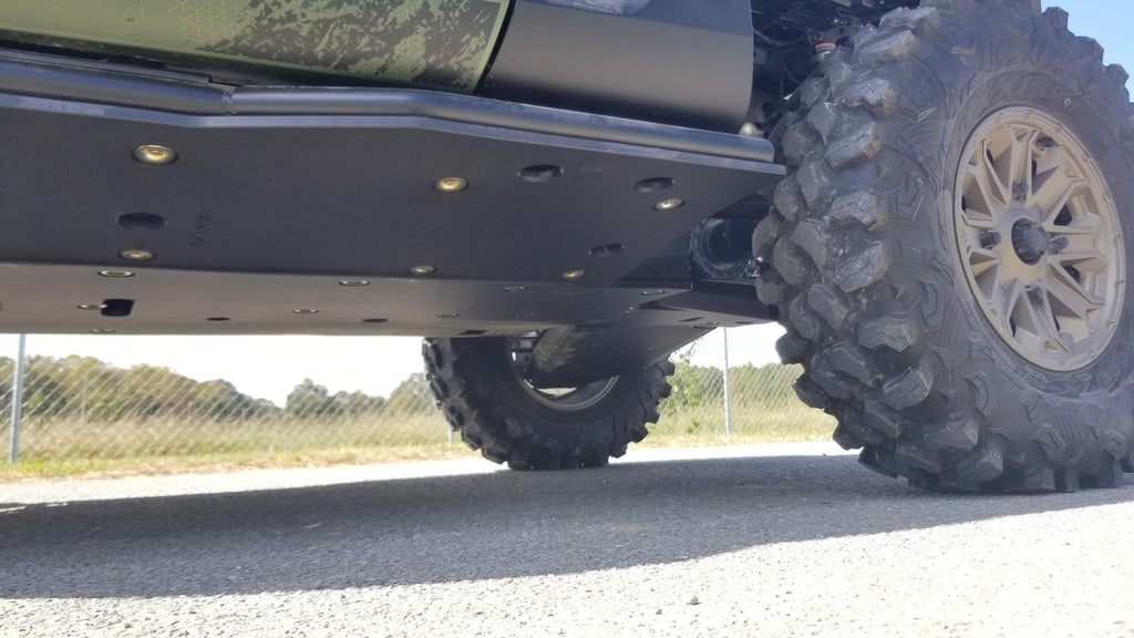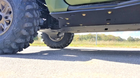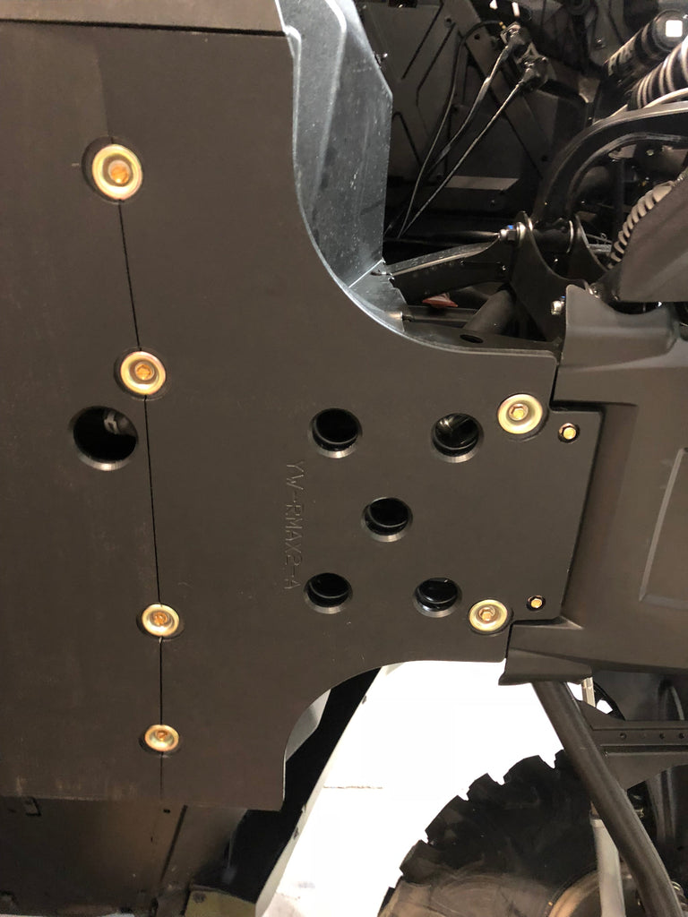 Get the best in under vehicle protection with Trail Armor's full skid plate set for the 2021 - 2025 Yamaha Wolverine RMAX2, RMAX2 1000 X-TR, RMAX2 1000 LT Edition, and RMAX21000 Sport. Made from our own custom blend of ultra high molecular weight polymer, these 1/2" plastic skids are lighter than most traditional metal/aluminum skid plates and because they have no "impact memory", they absorb shocks to the bottom of your vehicle without the dents, galling and corrosion of metal/aluminum skids. Trail Armor was the first in the industry to design skids with leading edges (front and rear) featured on our skid plates. These leading edges protect vulnerable frame edges and wheel wells from blunt edge impacts and act as a starting edge to slide over obstacles without the resistance and drag of metal skid plates. Additionally, these skids for the RMAX2 are designed side panels that extend approximately a 1/2" past the rocker panels to protect the vulnerable sides and rocker panels of your vehicle. Compare Trail Armor's skid set coverage with other skid manufacturer's like items - slider nerfs are either sold separately or the bottom skid coverage ends before the rocker panel, leaving this part of your vehicle unprotected. Trail Armor's skid plates come in easy to install panels that cover the full length and breadth of the vehicle, including the front and rear differential. They install directly over the existing metal factory skid plate. Access holes to service points and oil drains make maintenance a breeze. Strategically placed drain holes allow dirt and debris to wash out - you don't have to remove them to clean out the belly your vehicle. However, if needed, individual panels may be removed to access different areas without removing the entire skid plate. Recessed mounting holes protect fasteners from damaging blows and keeping all bolt heads from protruding the skid's surface. All kits come with corrosion resistant hardware and photo-documented installation instructions. Installation videos, if available, are provided as a YouTube video on our site. A-Arm guards if shown installed in pictures are not included and sold separately. Colors are not matched to any OEM graphic package. Colors are considered a special order and are non-returnable. Please see Also Fits Chart in gallery for specific year and model fitment.